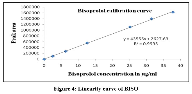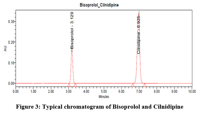 In the proposed method, the retention time of Bisoprolol and Cilnidipine was found to be 3.129min and 6.925min respectively. Quantification was linear in concentration range of 2.52-37.80µg/ml for Bisoprolol and 5.0-75.0µg/ml for Cilnidipine. The regression equation of the linearity plot of concentration of Bisoprolol and Cilnidipine over its peak area was found to be
