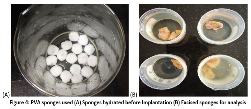 Figure 4: PVA sponges used (A) Sponges hydrated before Implantation (B) Excised sponges for analysisClick here to view Figure |