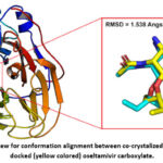 At first, the accuracy of the docking protocol was assessed in this virtual screening study. For this purpose, the redocking approach was employed as seen in Figure 2 of the results part. According to Figure 2, the conformations difference RMSD was 1.538 Angstrom between co-crystalized and docked oseltamivir carboxylate. As such, this low RMSD value means that the used docking protocol in this study is reliable and has a good accuracy. It is well-known that low RMSD value refers to less degree of conformation change between the native and docked ligands, and thus reflects good docking protocol accuracy. Based on published articles, a conformation difference RMSD ranging between 1.5 and 2.0 Angstrom usually point to good docking accuracy.40