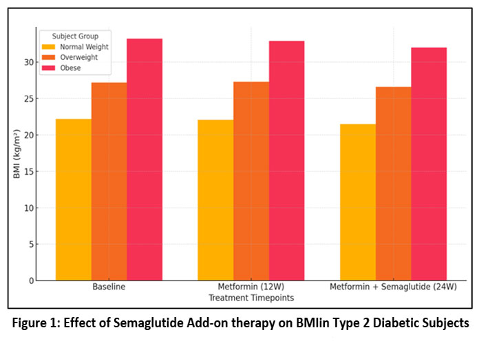 Figure 1: Effect of Semaglutide Add-on therapy on BMIin Type 2 Diabetic Subjects |