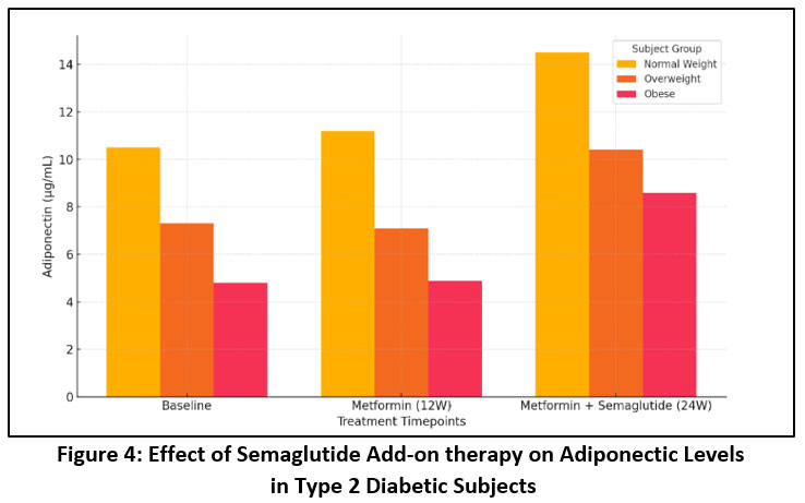 Figure 4: Effect of Semaglutide Add-on therapy on Adiponectic Levels in Type 2 Diabetic Subjects |