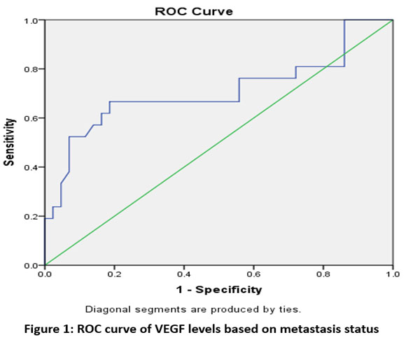 Figure 1: ROC curve of VEGF levels based on metastasis status |