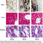 Zha et al.44 used graphene foams (GF), and graphene oxide foams (GOF) on the rat model for short term and long term for vivo toxicity studies, and they have seen that, GFs and GOFs are not caused any discernible hematologic, hepatic, or renal toxicity upon implantation, there is no change up to 7 months. For a considerable amount of time, only granulomas were seen at the implantation site. Better in vivo biocompatibility was demonstrated by HE-stained pictures (Fig. 10). The most straightforward and efficient method of evaluating was by subcutaneous experimentation have impact on patterns of GO in vivo. The GO/HA composite on MG-63 cells of Mahmoodi et al.45 and their results are shown in Fig. 11.