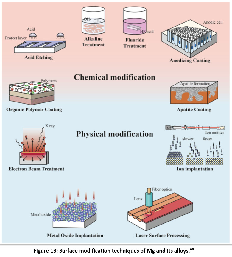 Figure 13: Surface modification techniques of Mg and its alloys.48