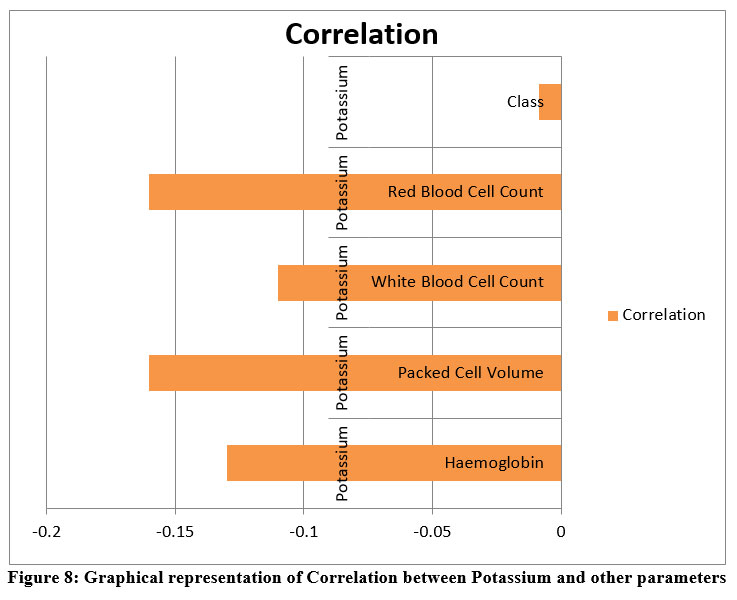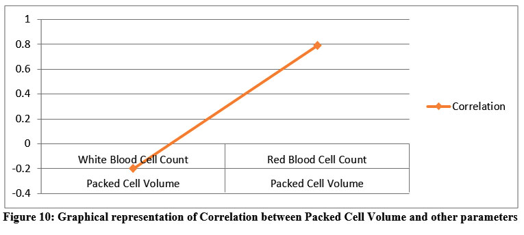 Table 10 and Figure 10. representing the correlation between Packed Cell Volume with the other parameters in Tabular and graphical representation as :
