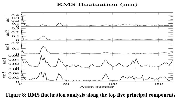 Figure 8: RMS fluctuation analysis along the top five principal componentsClick here to view Figure |