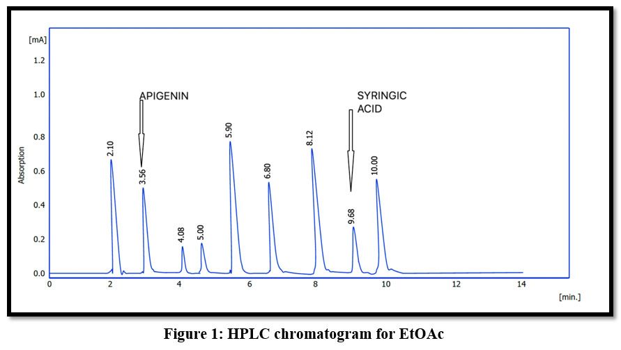 Table 1: Retention time in min. for phenolic compounds in EtOAc fraction