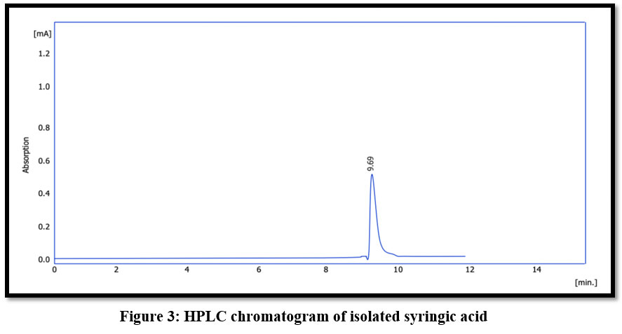 Figure 3: HPLC chromatogram of isolated syringic acid |