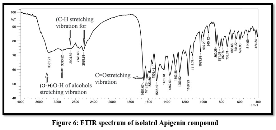 Figure 6: FTIR spectrum of isolated Apigenin compound |