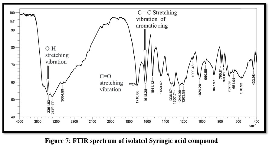 Figure 7: FTIR spectrum of isolated Syringic acid compound |