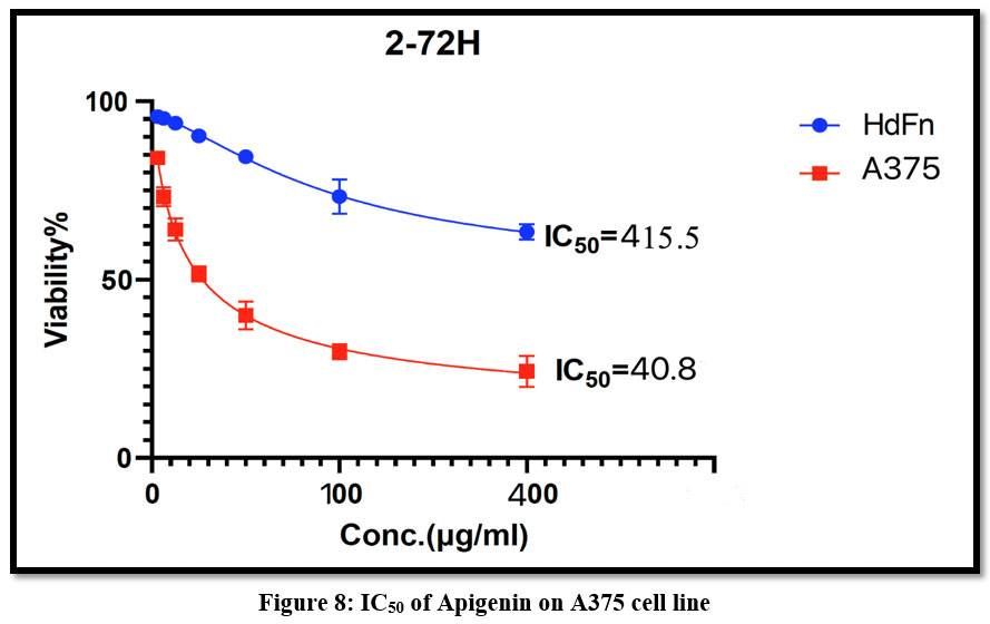 Table 2: Cytotoxicity of Apigenin on A375 cell line and HdFn Cell after 72 hours of Incubation at 37ºC