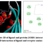 Figure 4: a) indicate 3D of ligand and protein (1OH0) interaction with distances b) 2D interaction of ligand and receptor amino acids |