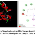 Figure 5: a) 3D of ligand and protein (2J6M) interaction with distances and b) 2D interaction of ligand and receptor amino acids |