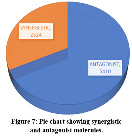 Figure 7: Pie chart showing synergistic and antagonist molecules. |