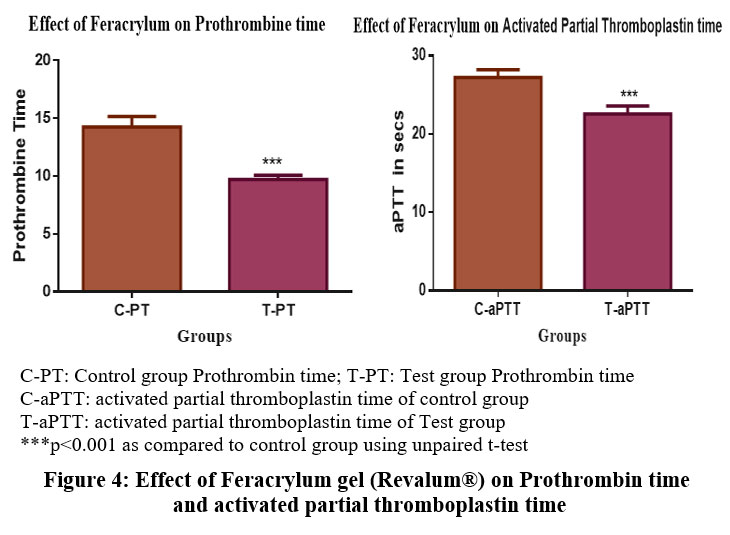 Table 2: Effect of Feracrylum gel (Revalum®) on Bleeding Time, Clotting time, Prothrombin time and activated partial thromboplastin time