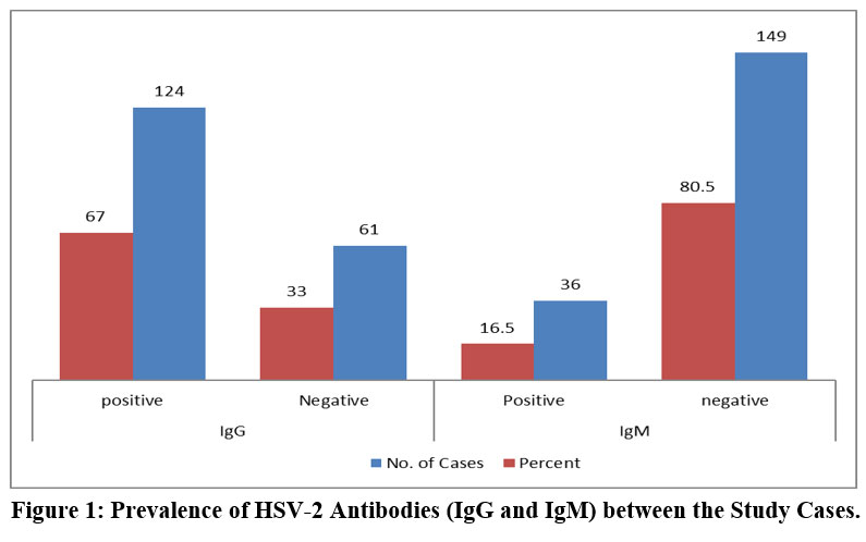 Figure 1: Prevalence of HSV-2 Antibodies (IgG and IgM) between the Study Cases. |