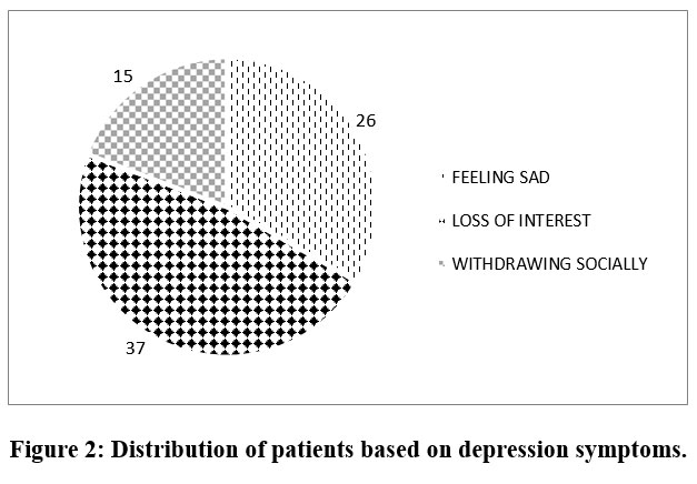 The prevalence of various signs of depression like loss of interest, feeling sad and withdrawing socially. The Figure 2 displays 78% of them experienced symptoms of depression, indicating that there is high chance of getting depression for patients undergoing levetiracetam therapy. This highlights the need for careful monitoring and timely intervention to manage mental health issues that may arise during treatment.