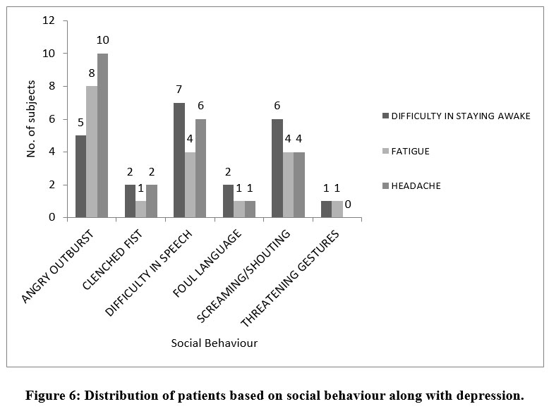 Figure 6: Distribution of patients based on social behaviour along with depression. |