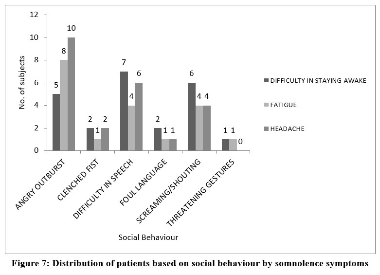 Figure 7: Distribution of patients based on social behaviour by somnolence symptoms. |