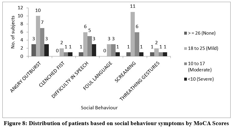 Figure 8: Distribution of patients based on social behaviour symptoms by MoCA Scores. |