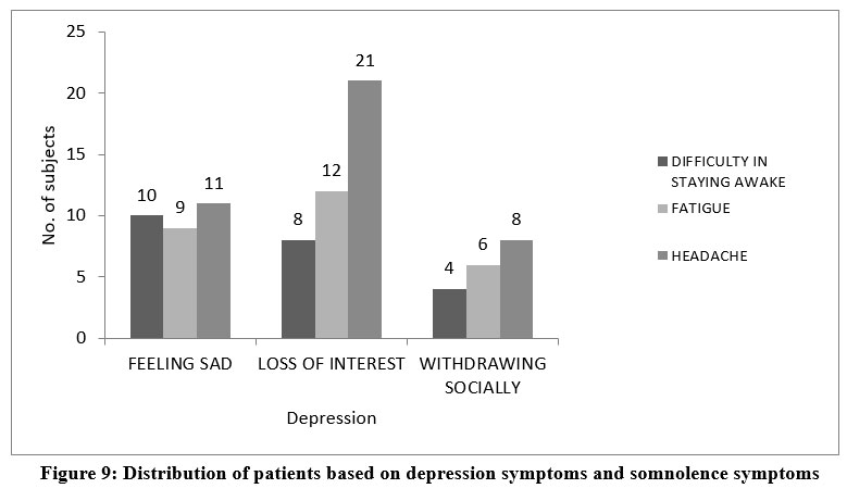 Figure 9: Distribution of patients based on depression symptoms and somnolence symptoms. |