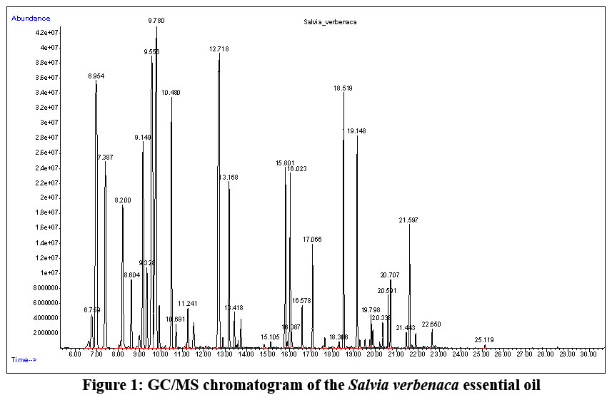 Figure 1: GC/MS chromatogram of the Salvia verbenaca essential oil |