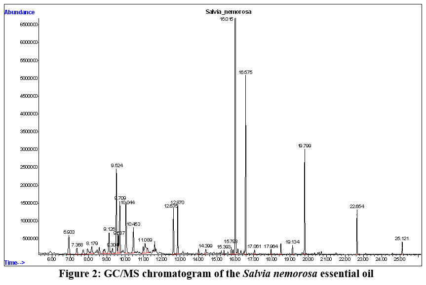 Figure 2: GC/MS chromatogram of the Salvia nemorosa essential oil |
