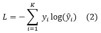 The model is trained using categorical cross-entropy loss, which penalizes the deviation between predicted probabilities and true labels. For KKK classes, the loss function is defined as.