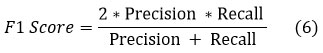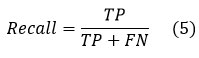 Alternatively referred to as sensitivity or true positive rate, recall is an essential metric in classification endeavors, especially when it is critical to accurately identify every positive instance. Its definition is the ratio of real positive cases in the dataset to the genuine positive forecasts. In terms of the four prediction instances mentioned earlier, the equation for recall can be expressed as follows: