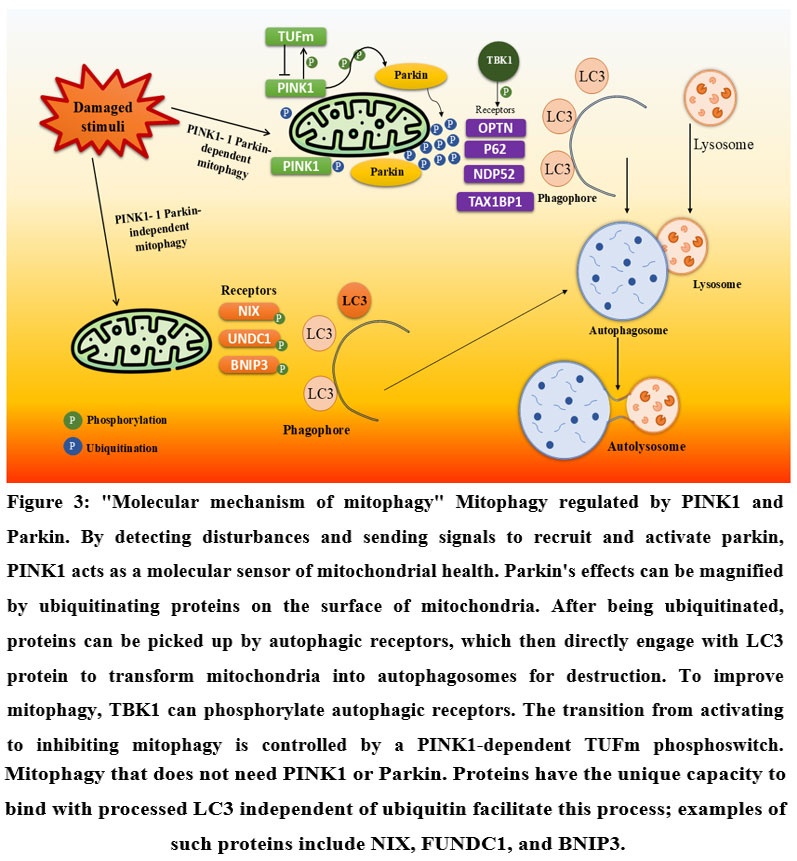 Figure 3: “Molecular mechanism of mitophagy” Mitophagy regulated by PINK1 and Parkin. |