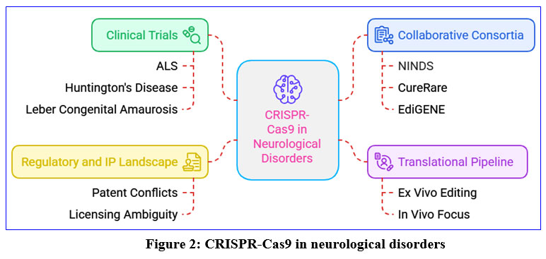 Internationally, the regulatory systems wielding CRISPR in the CNS are not fully developed. The NIH in the United States encourages somatic gene therapy and has a well regulated approach to it, whereas FDA insists on high leveled preclinical evidence and safety testing over several clinical years of assessment. The European Medicines Agency (EMA) emphasizes pharmacovigilance, quality control, and ethical trial protocols. India’s ICMR guidelines permit somatic cell gene editing under ethical review board approval but ban germline editing.44 World Health Organization (WHO) has proposed a registry of human genome editing trials worldwide and insisted on transparency, equality, and involvement of people in governance of gene editing.