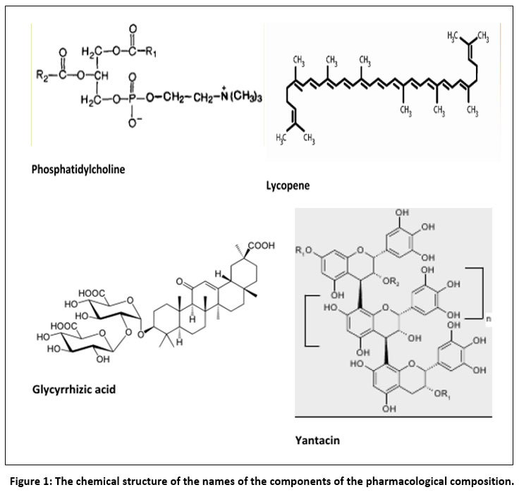 Figure 1: The chemical structure of the names of the components of the pharmacological composition. |