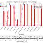 Figure 1: Here is a bar chart visualizing drug-likeness, bioavailability, and molecular weight for different phytochemicals. |