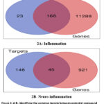 Figure 2: A-B: Identifying the common targets between potential compound candidates and disease-related genes through a Venn Plot Diagram. |