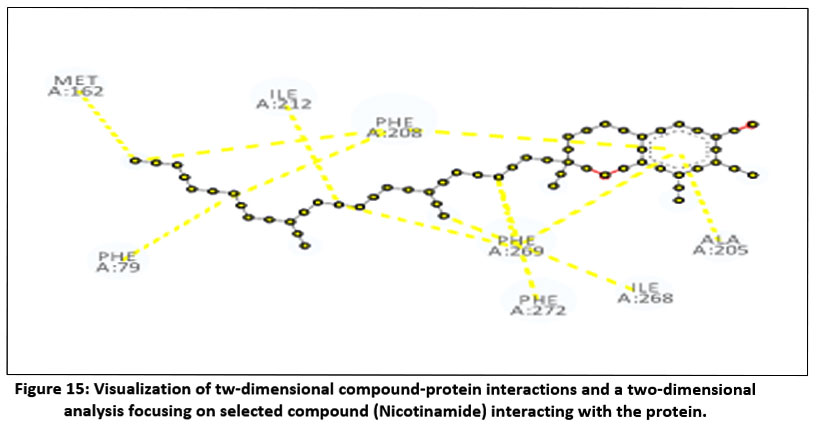 Figure 15: Visualization of tw-dimensional compound-protein interactions and a two-dimensional analysis focusing on selected compound (Nicotinamide) interacting with the protein. Click here to view Figure |