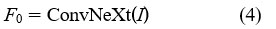 Suppose I R3×512×512 is an input image, and P = {p1, p2, . . . , pN} are its patches. The ConvNeXt-V2 stem projects an input I to a feature tensor F0: