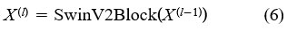 These token sequences go into a Swin-V2 transformer that applies multi-head self-attention across local shifted windows:
