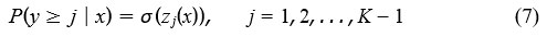 Predict cumulative logits z j(x) and compute P(y j)