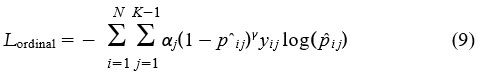In order to handle class imbalance and increase robustness, we adopt class-balanced focal loss modified for ordinal classification: