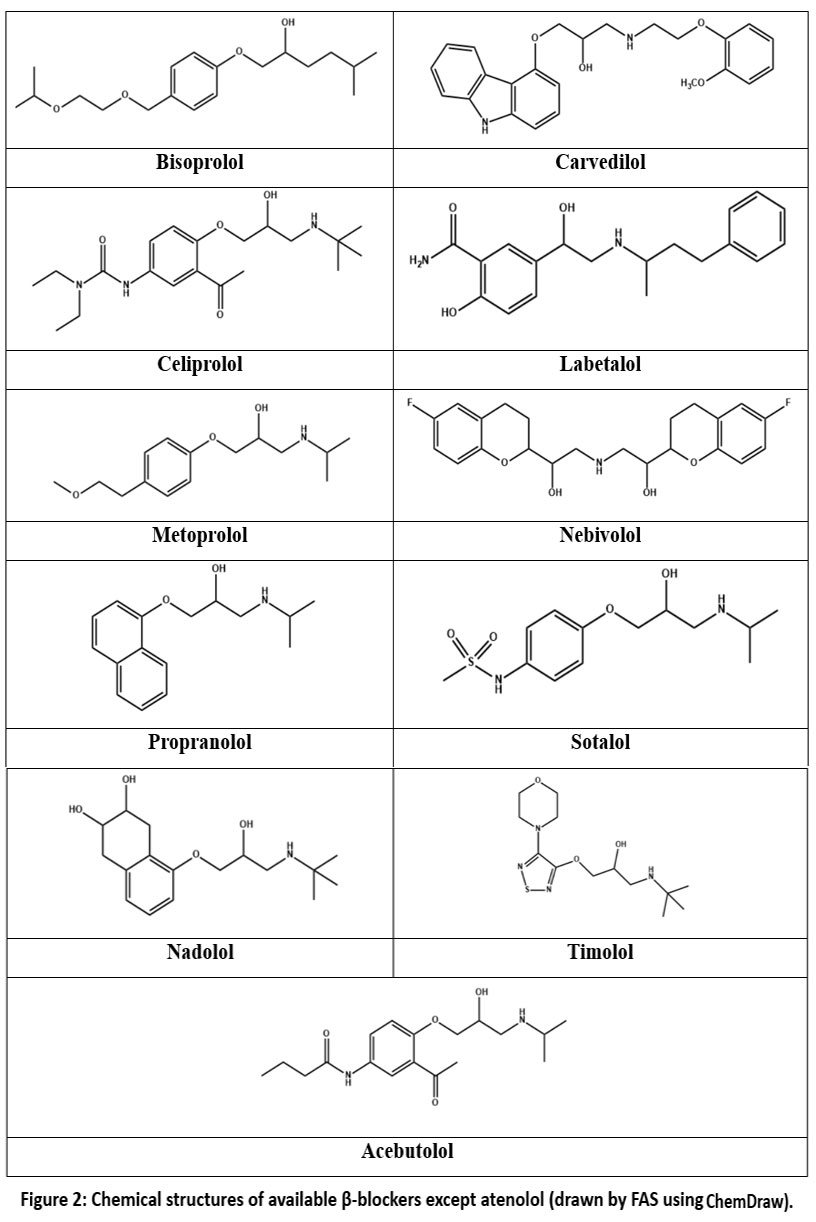 Figure 2: Chemical structures of available β-blockers except atenolol (drawn by FAS using ChemDraw). |