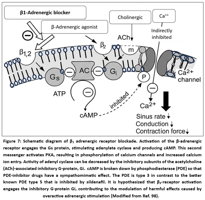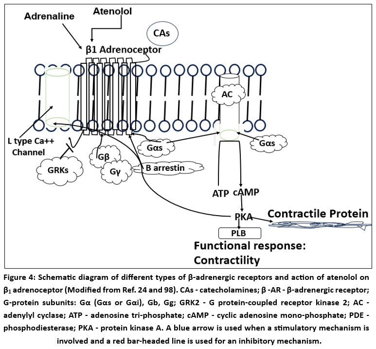 Figure 4: Schematic diagram of different types of β-adrenergic receptors and action of atenolol on β1 adrenoceptor (Redrawn from Ref. 24). |
