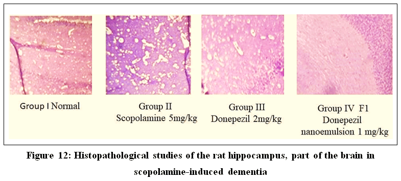 Figure 12: Histopathological studies of the rat hippocampus, part of the brain in scopolamine-induced dementia