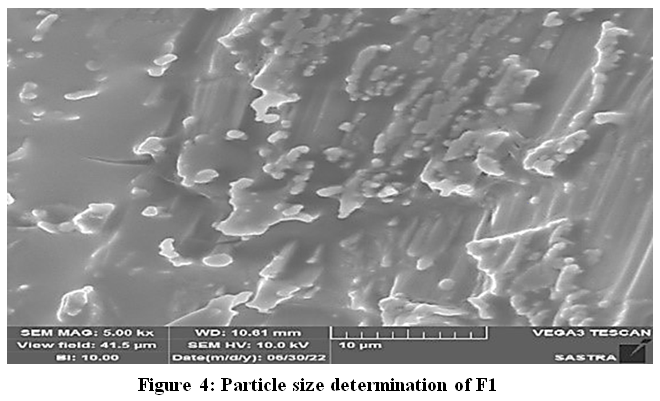 The surface characteristics of Donepezil hydrochloride, PEG 400, oleic acid, and Tween 80 were examined utilising SEM (Vega 3 Tescan). The specimens were analysed using electron microscopy, displayed in secondary electron mode.19,20