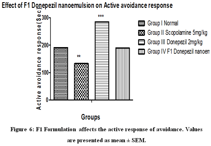 Figure 6: F1 Formulation affects the active response of avoidance. Values are presented as mean ± SEM.