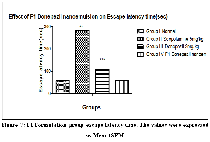 Figure 7: F1 Formulation group escape latency time. The values were expressed as Mean±SEM.