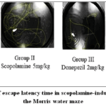 Engaging in the Morris water maze task over the course of seven days improves rats’ ability to find the concealed platform in the designated quadrant. Rats that received scopolamine treatment exhibited longer escape latencies (the duration required to locate a platform) relative to those given the vehicle–inoculated controls through the training days, thereby suggesting more deficits. Groups that were treated with saline quickly acquired the location of the platform. F1 Formulation treated groups Trough nasal route, like the groups treated with donepezil, had significantly lowered the Scopolamine effects on Escape latency (EL). Results were shown in Figures 7 & 8.